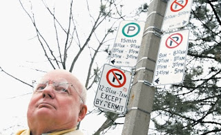 Attention to detail was never one of my strong suits so getting a ticket was not a huge surprise. But in my defence I do believe one is in need of a law degree to determine whether you can park on Toronto city streets. For instance, there's a sign that specifies four time periods, many of them starting or ending on the quarter hour, during which time there is no parking allowed; but there are three time periods where you are allowed to park-but only for 15 minutes-but only if within a certain window which can vary from 45 minutes in the morning to two hours at lunchtime and one half hour in the afternoon. You know what? They should just install one sign with a photo of Clint Eastwood as Dirty Harry and have the sign read, “Do you feel lucky? Well do ya?” I’m just going to pay the damn thing. It’s easier than trying to decipher the signs and plead my stupidity. But I hold no grudge towards those bastard; low life; pieces of shit; parking commissionaires. No not I.